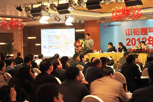 會(huì)上,魯肇衡總裁代表中裕能源經(jīng)營(yíng)班子發(fā)表了題為“以市場(chǎng)為導(dǎo)向,搶抓機(jī)遇、持續(xù)求進(jìn),不斷提升企業(yè)經(jīng)營(yíng)管理水平”的年度工作報(bào)告,在總結(jié)通報(bào)中裕系統(tǒng)2011年所取得各項(xiàng)成績(jī)的同時(shí), 對(duì)2012年重點(diǎn)工作進(jìn)行了安排部署。魯總指出,2011年集團(tuán)上下同欲,通過“拓市場(chǎng)、固陣地、研政策、增氣源、保安全、穩(wěn)管控”等具體措施,有效地保證 了公司的可持續(xù)健康發(fā)展,2012年,中裕燃?xì)獬闪⑹曛H,我們要堅(jiān)持圍繞“市場(chǎng)、氣源、政策”三大戰(zhàn)略資源,搶抓機(jī)遇,敢于創(chuàng)新,務(wù)實(shí)發(fā)展, 推動(dòng)集團(tuán)業(yè)績(jī)?cè)偕闲屡_(tái)階。