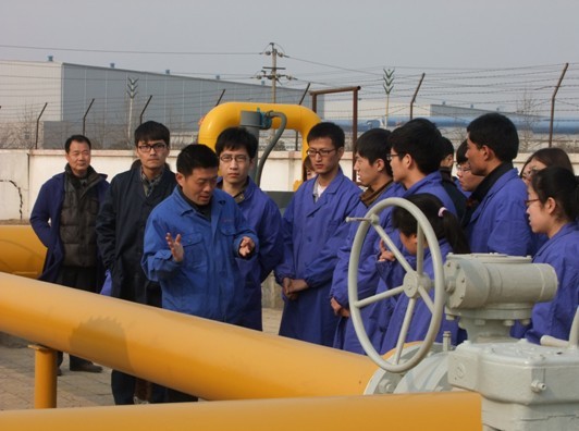 隨后,大學(xué)生們對《城鎮(zhèn)燃?xì)夤芾項l例》、《焦作中裕天然氣發(fā)展簡況及站場工藝操作流程介紹》、《燃?xì)夤艿拦こ淘O(shè)計編寫介紹》進(jìn)行了集中學(xué)習(xí),并就這些課題分別與焦作中裕安全監(jiān)察部王洋、小尚門站站長尚國華、技術(shù)設(shè)備部部長李寶慶進(jìn)行了交流和探討。