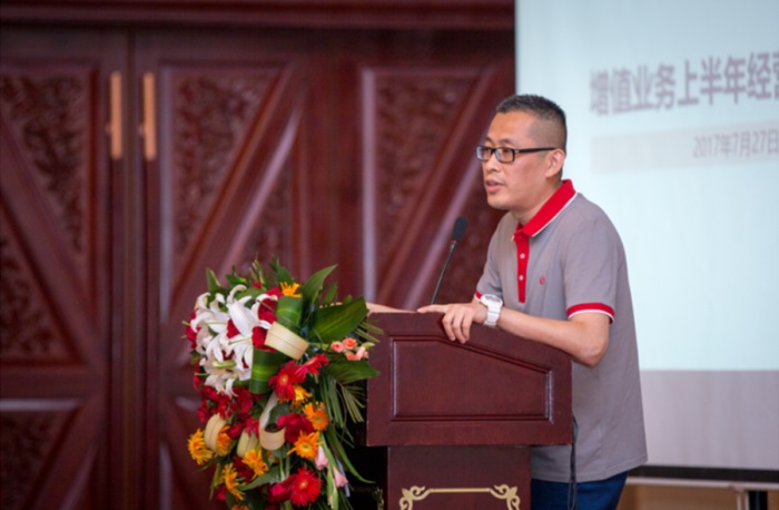 市場客服部副總經理湯萌做《增值業(yè)務半年分析報告》