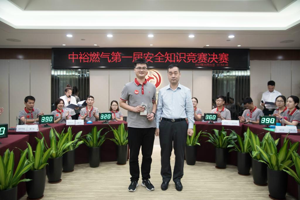 賽后,集團(tuán)董事局主席王文亮先生親臨現(xiàn)場為風(fēng)采獎獲獎選手頒獎并發(fā)表講話。王主席強(qiáng)調(diào),安全是中裕燃?xì)獾暮诵膬r值觀,是立足于市場的根本保證,此次安全知識競賽,在傳承和發(fā)揚(yáng)中裕燃?xì)獍踩幕耐瑫r,也提升了全體員工的安全意識和凝聚力。